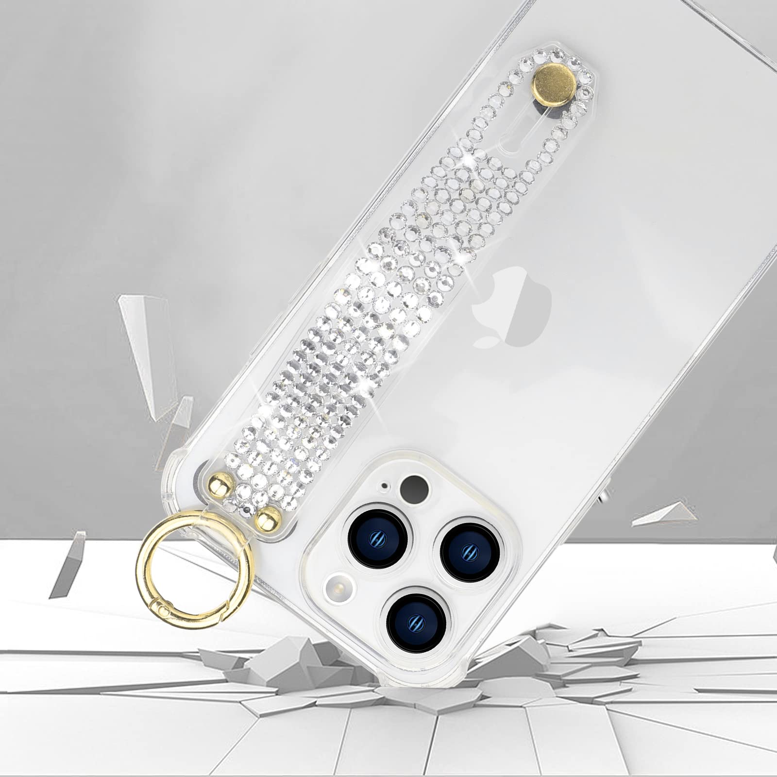 - [Full Body Shockproof Protection & Clear] Made of high quality Soft tpu silicone and handmade crystal diamond material, can absorb the impact in most cases, surround your iPhone 14 Pro Max and protect it from accidental drops, provide ultimate protection for your iPhone 14 Pro Max. This clear wrist strap holder iPhone 14 Pro Max case won't hide phone's original beauty and color, it will make your phone out of the lead.