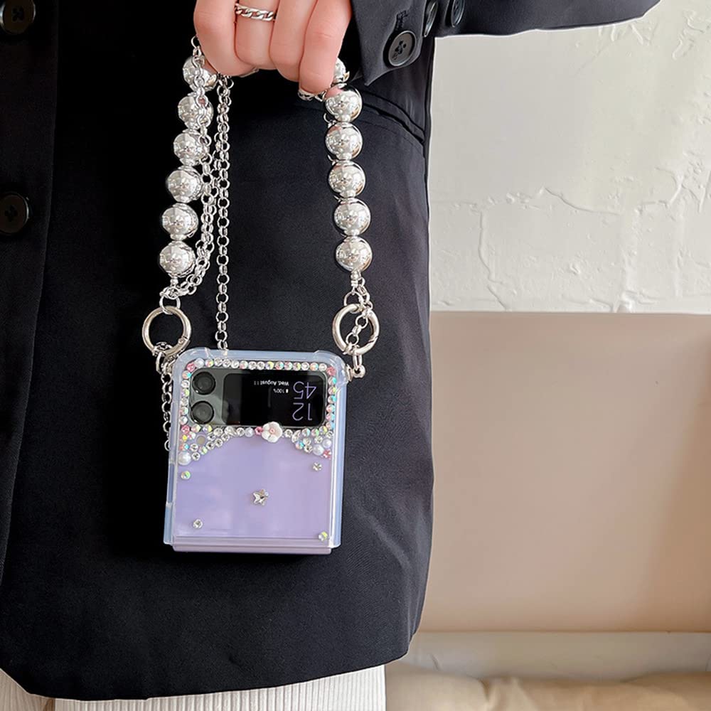 - [Diamond Case Compatible with Samsung Galaxy Z Flip 4] New designed Handmade Crystal Diamond Chain case only compatible with Samsung Galaxy Z Flip 4 5G, not fit for other model size. Please make sure your phone model is Galaxy Z Flip 4 before buying. If you have bought it by mistake, please contact the Amazon customer service team for help. Any other issues please feel free to write to us at the first time. We will fix it for you with 24 hours.