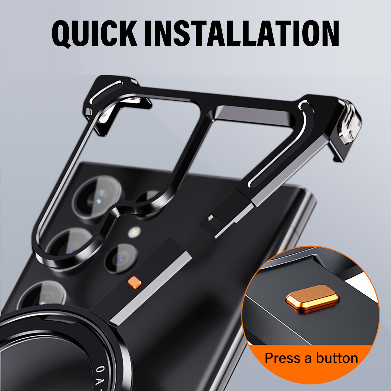 - [Military Grade Drop Shockproof Protection] This Galaxy S25 Ultra case bumper is made of high quality aluminum alloy material. Combined with four-corner silicone pad, effectively reduce the impact of falling on the phone. Provide ultimate protection for your Galaxy S25 Ultra. This frameless stand case won't hide phone's original beauty and color.
