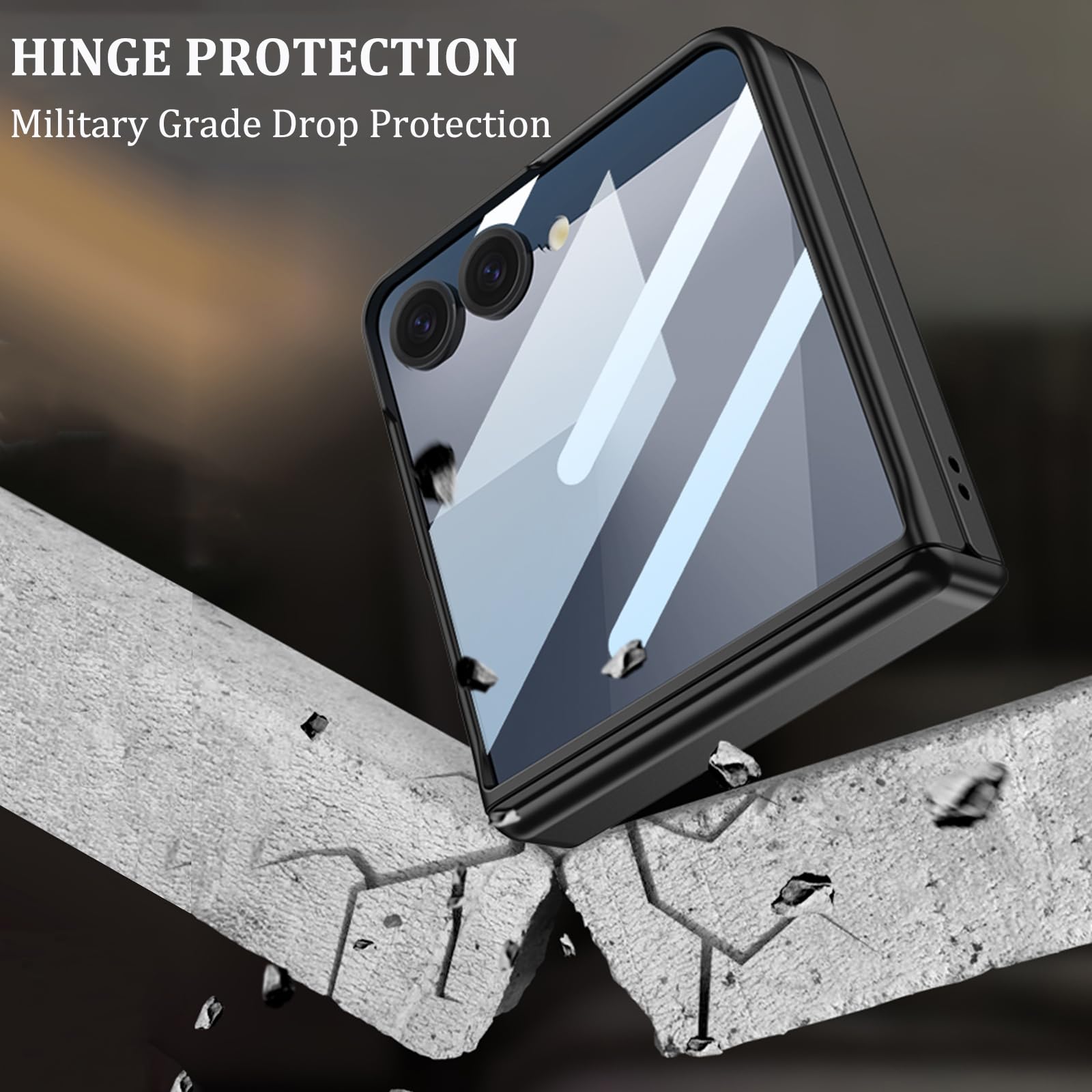 - [Fully Wrapped Hinge Protection Design] The newly upgraded hinge protection case is compatible with Galaxy Z Flip 7, providing a comfortable grip and protecting the fragile phone hinge. It connects the upper and lower parts of Galaxy Z Flip 7 more closely and firmly, providing strong protection for your Z Flip7 and featuring excellent impact and drop resistance.