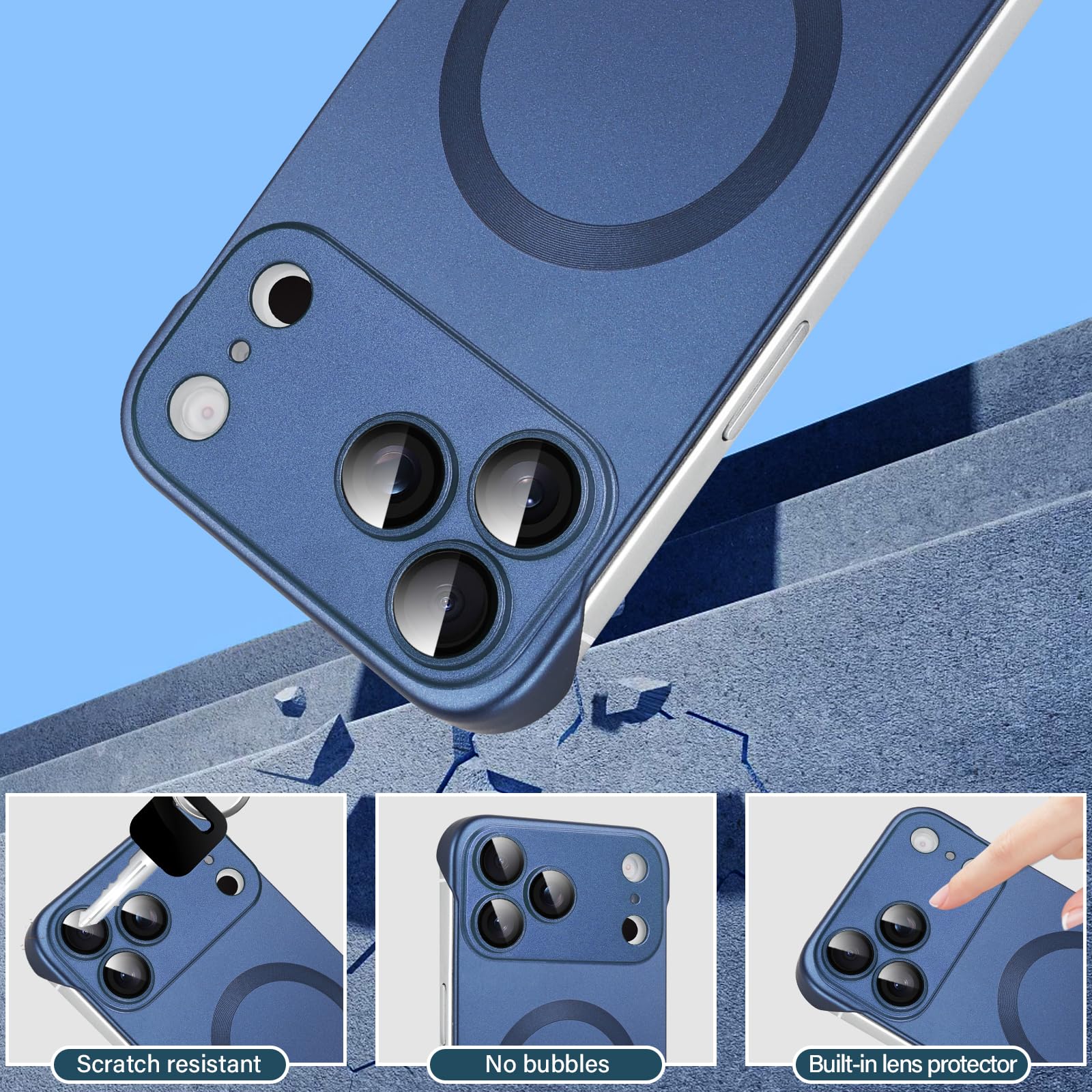 -6%Omio Magnetic Slim Case for iPhone 17 Pro Compatible with MagSafe, Matte PC Ultra-Thin Bumper Frameless Borderless Minimalist Design with Camera Lens Protector for Men Women, Dark Blue—