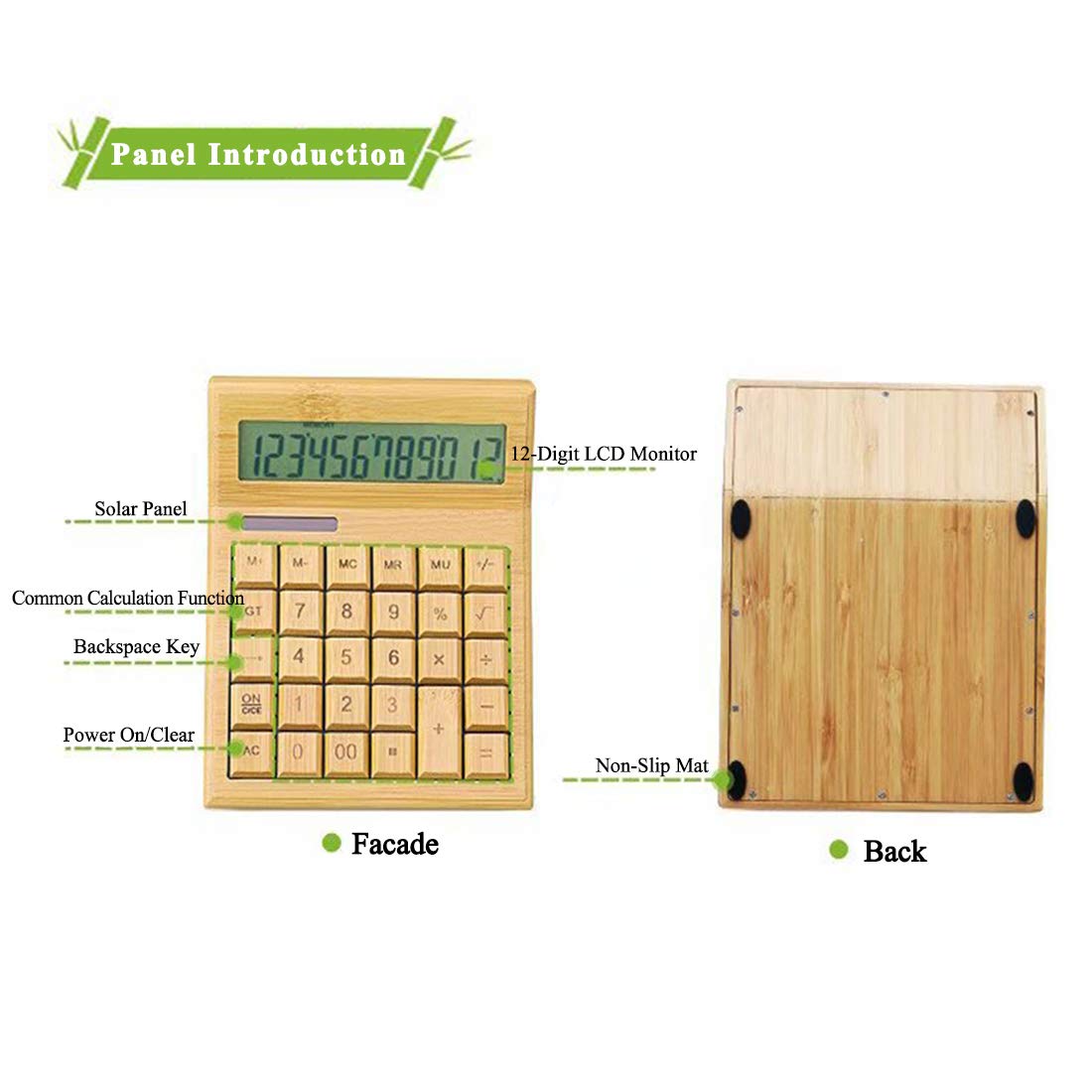 - ? The wooden solar calculator is a general purpose desktop calculator, with 12 digits and large display, it is useful for large calculations. Using laser engraving technology, the carved numbers won't disappear even after a long time of use.